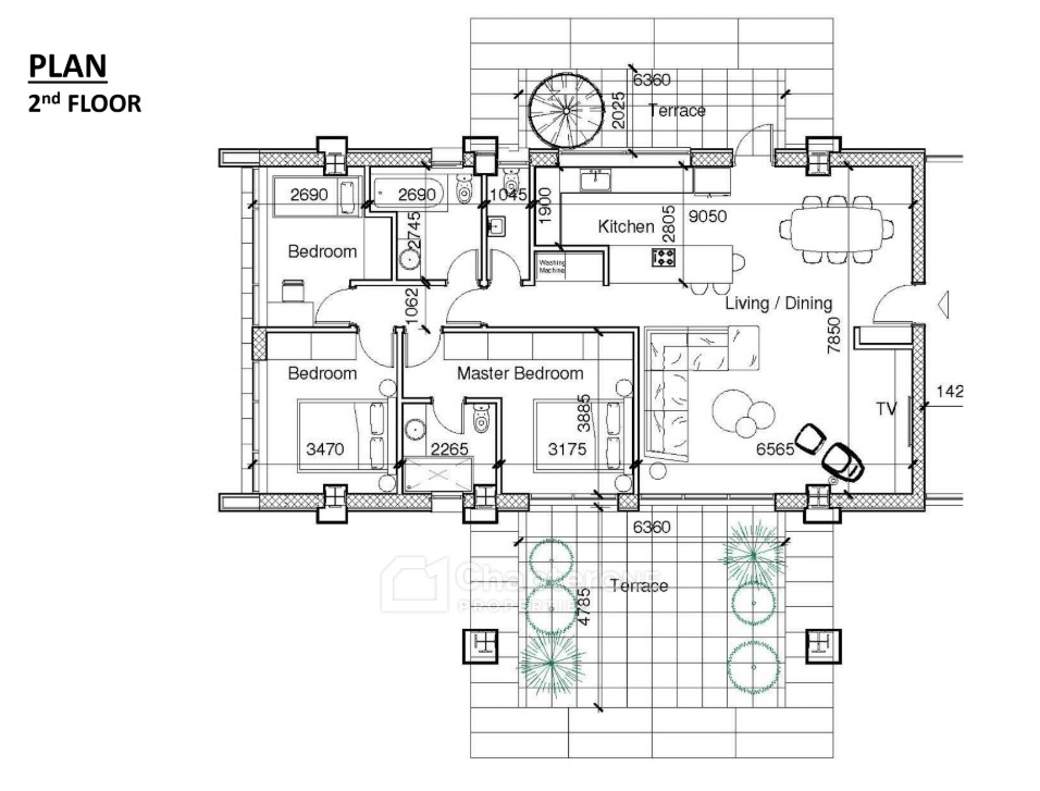 Three-bedroom 2nd floor fully furnished duplex apartment with a stunning 138 sqm private roof garden, moments from the sea front of Agios Tyhconas.
