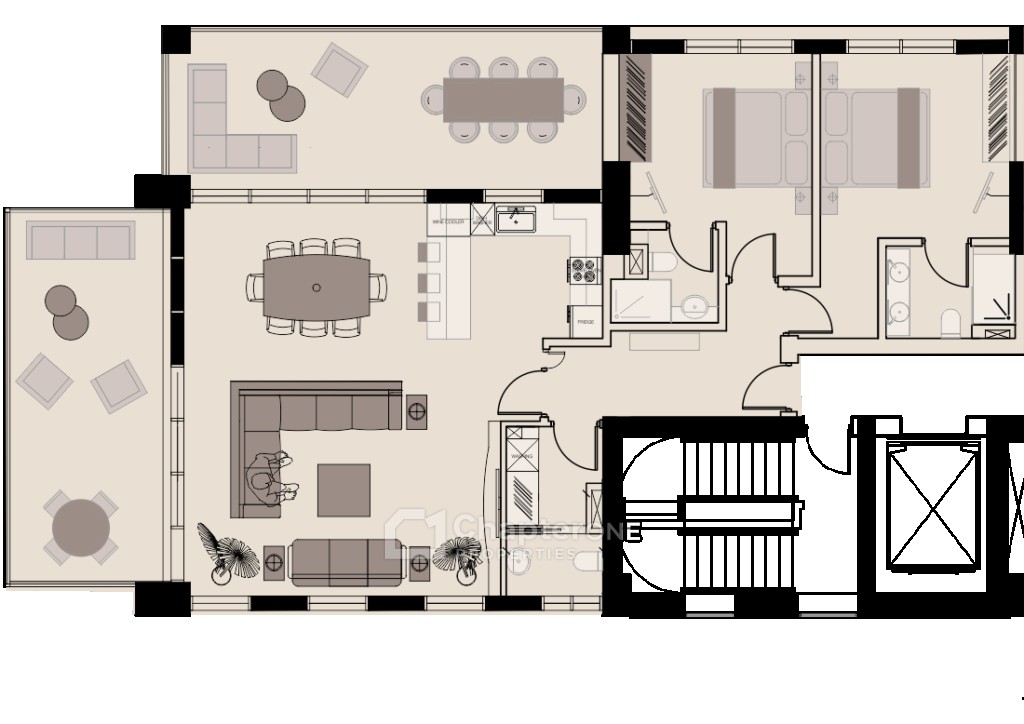Two-bedroom two-bathroom second floor apartment in a luxury development close to Limassol Municipal Gardens