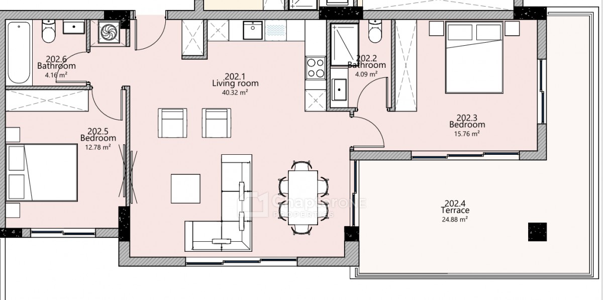 The development includes a high specification finish, such as underfloor heating, VRV system, photovoltaics, parquet flooring, modern bathroom accessories and kitchens from well-known European manufacturers. High ceilings, along with thermo- and sound-insulated windows, further enhance the living experience.
