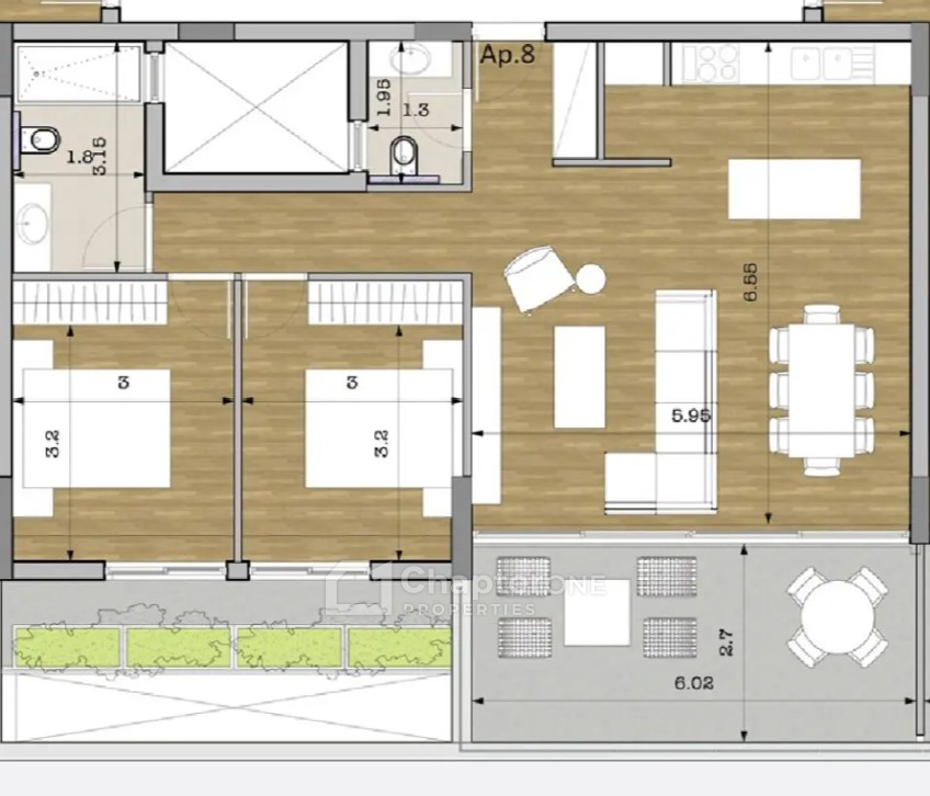 Currently under construction with a projected completion of July 2026, this two bedroom two bathroom third floor apartment is part of a new collection of just 12 residences, located in one of Limassol’s prime residential areas; Agios Athanasios.