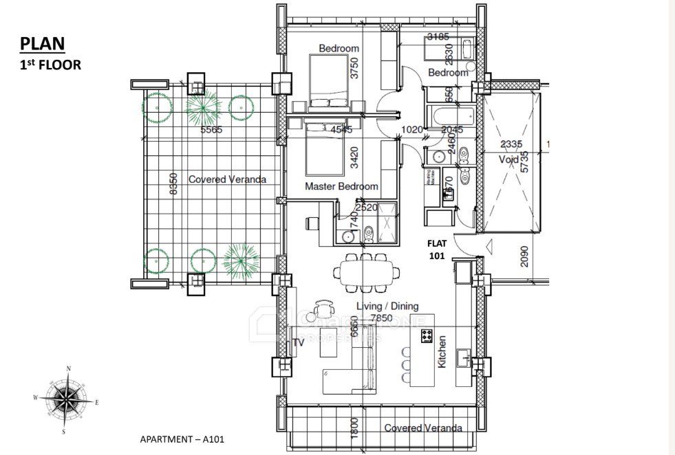 122 sq.m 1st floor three-bedroom two-bathroom plus guest WC luxury apartment with a 47 sqm covered veranda plus an 18 sq.m uncovered veranda, in an iconic landmark project in Agios Tychonas, moments from the shores of the Mediterranean Sea.
