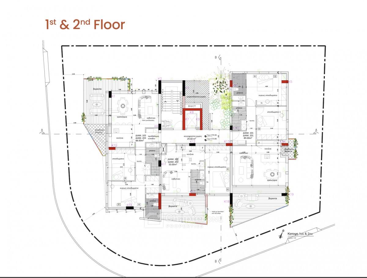 This modern residential development offers an impressive array of features and specifications designed for comfort, convenience, and sustainability. Located in a quiet, residential area near Akadimias Park in Aglantzia, it enjoys easy access to the city center, a range of amenities, and the nearby motorway.