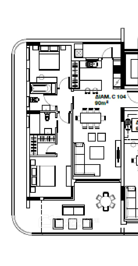 Available for reservation today, this 90m2 first floor two bedroom two bathroom apartment with a 28m2 covered veranda and a 16m2 uncovered veranda, in a new development commanding panoramic sea and city views.