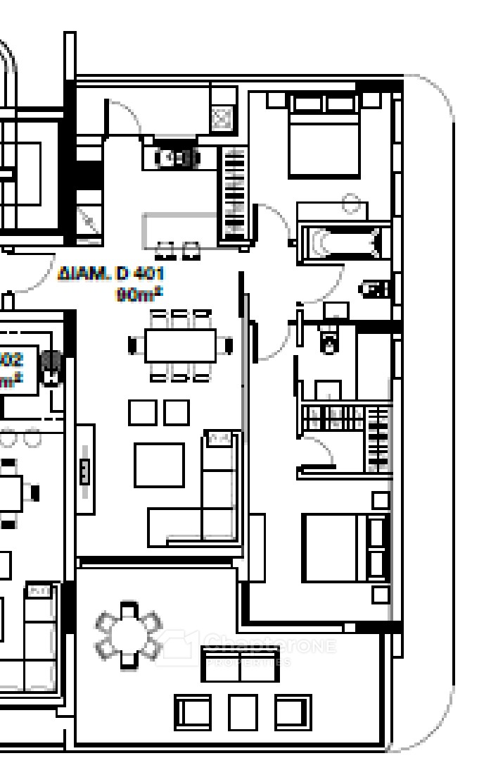 Available for reservation today, this 90m2 fourth floor two bedroom two bathroom apartment with a 28m2 covered veranda, in a new development commanding panoramic sea and city views.