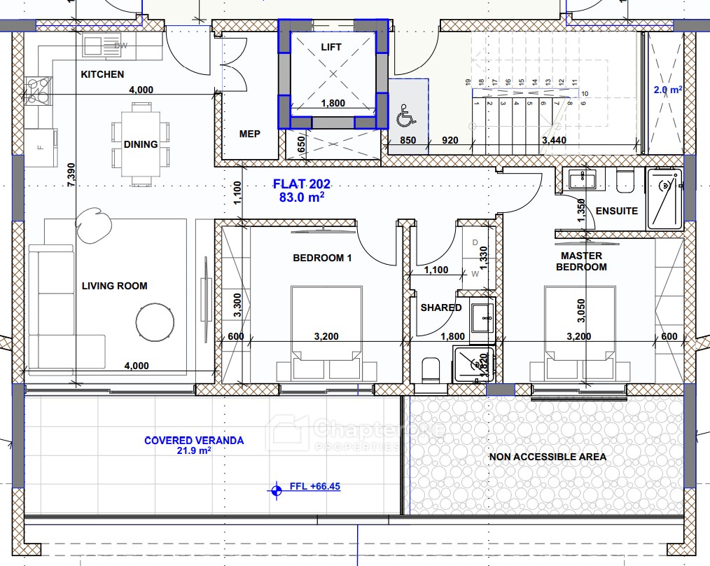 Built with the environment in mind, the building includes a photovoltaic system for energy efficiency, underfloor heating, and an air-conditioning system to keep your home cosy all year round.