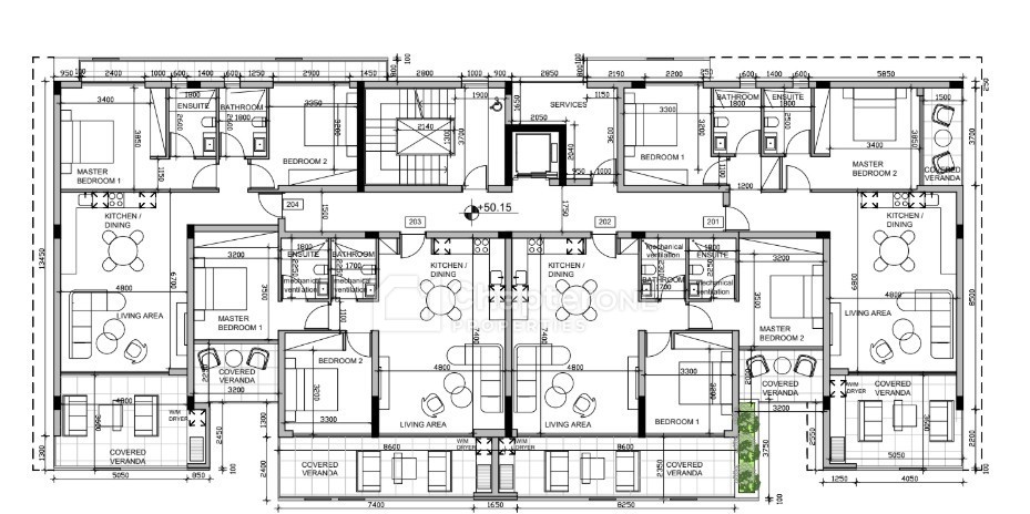 The spacious layout includes an open-plan living and dining area, a fully fitted modern kitchen, and two ensuite bedrooms with high-quality fixtures. Enjoy year-round comfort with underfloor heating and a VRV cooling system, providing efficient climate control. For added peace of mind, the property features a smart alarm system.