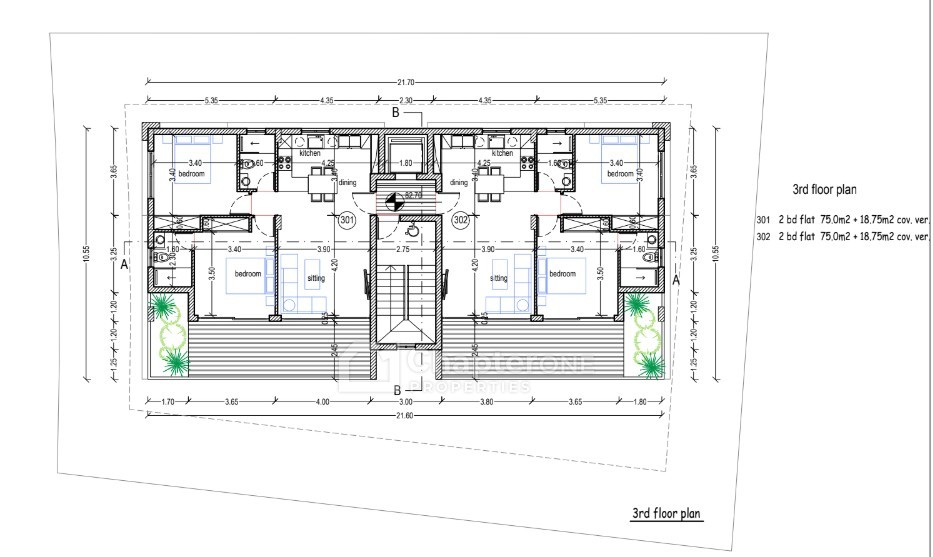 5 two-bedroom & 1 one-bedroom apartments across three floors