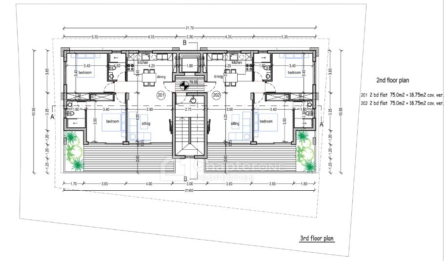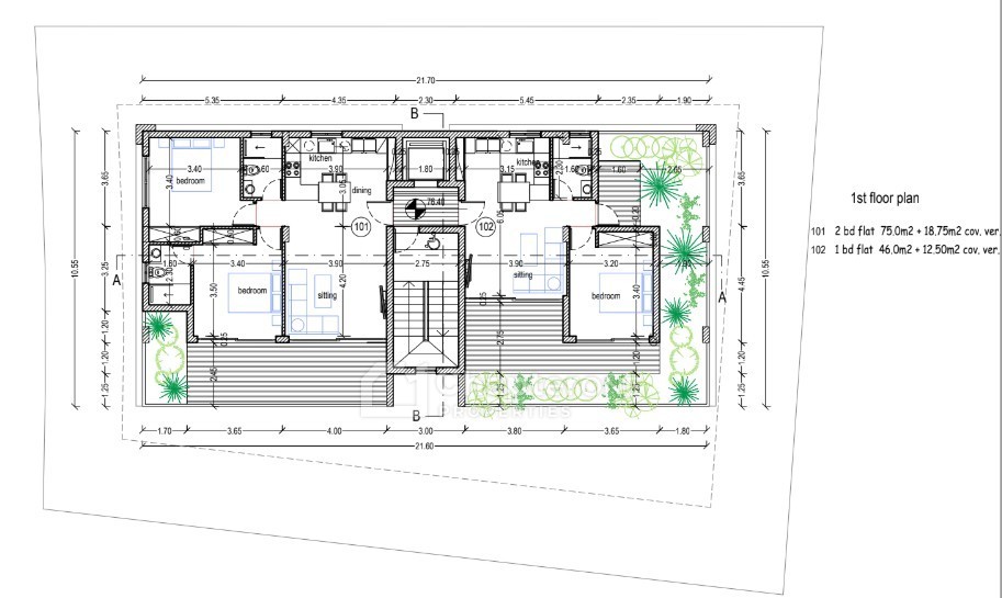 5 two-bedroom & 1 one-bedroom apartments across three floors
