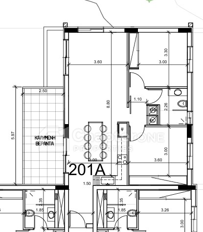 Two-bedroom second floor apartment with a 15sq.m covered veranda in a location above the highway at the top end of Agia Fyla, Limassol.