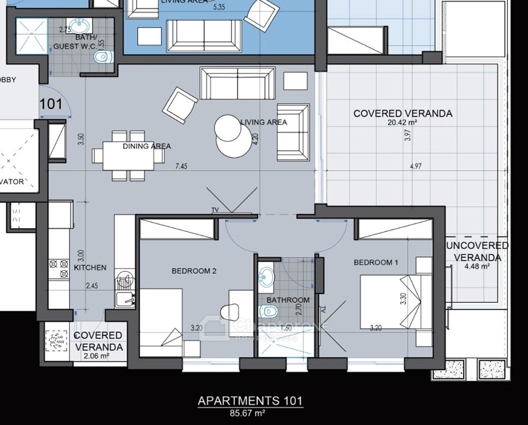 First floor two bedroom two bathroom apartment in a new 4-storey apartment building situated in the vibrant heart of Limassol, in the Katholiki area.