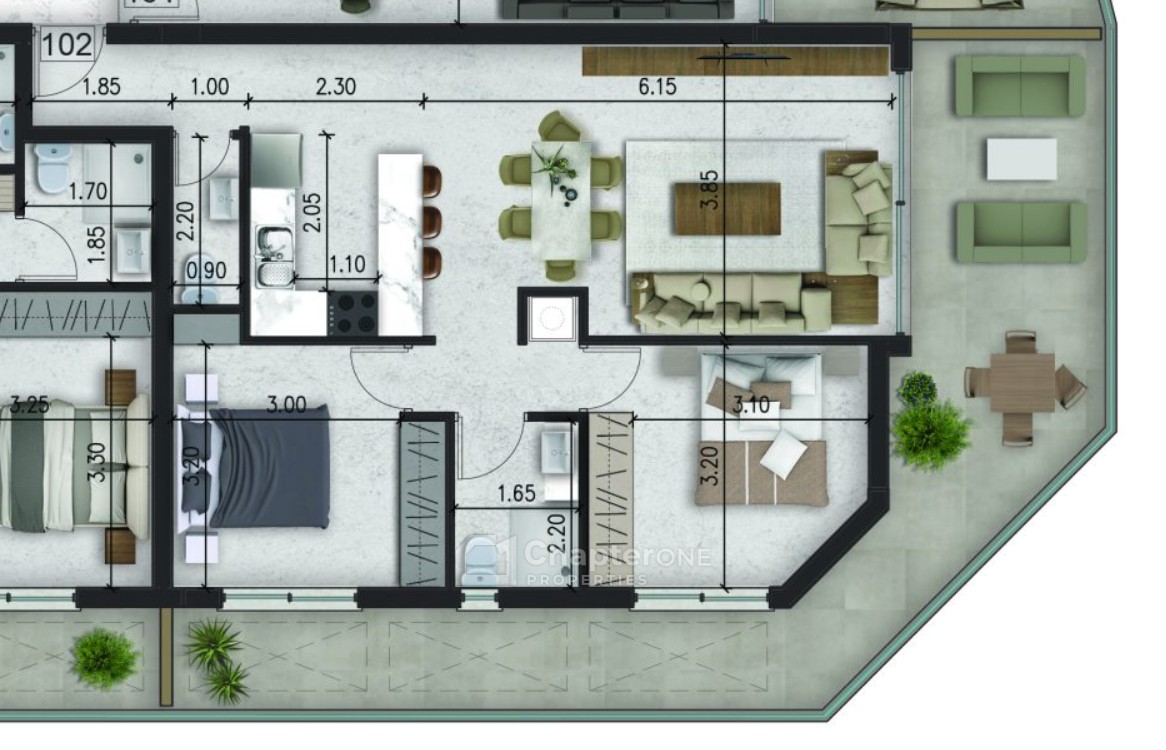 75sq.m two-bedroom first floor apartment with a 21sq.m covered veranda plus a 12sq.m of uncovered veranda, in a new and luxurious secure gated building situated in the heart of Limassol.