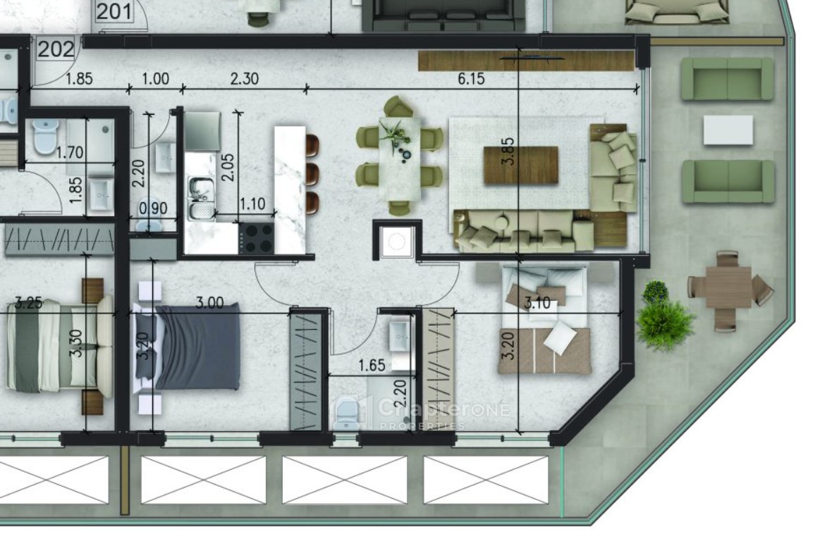 75sq.m two-bedroom second floor apartment with a 21sq.m covered veranda in a new and luxurious secure gated building situated in the heart of Limassol.