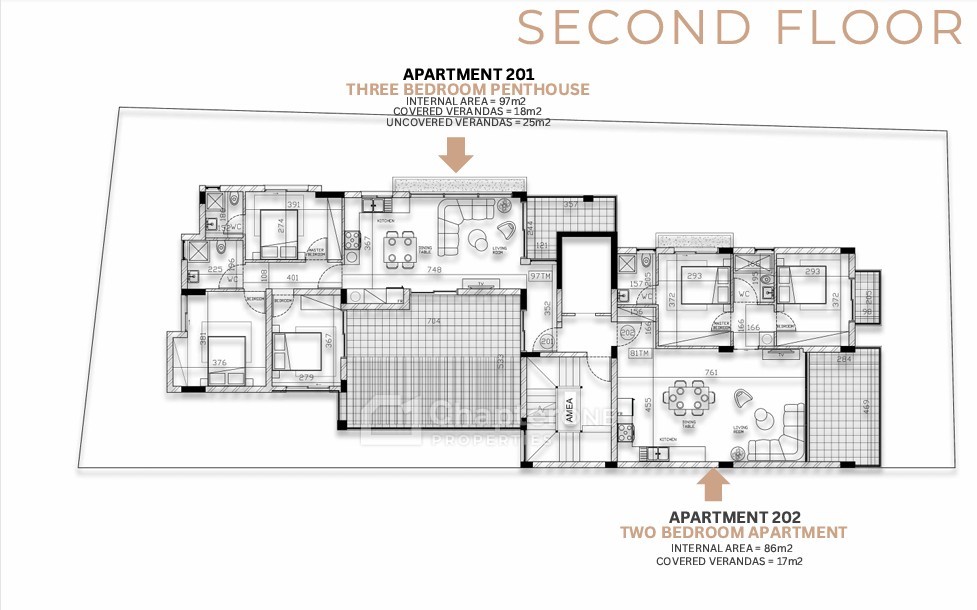 81sqm two-bedroom two-bathroom second floor apartment with a 16sqm covered veranda in a new development in the Limassol district of Petrou Kai Pavlou.