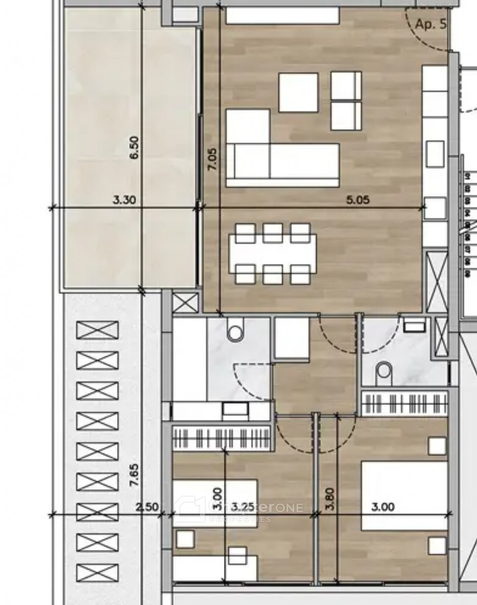 Two bedroom 85m2 second floor apartment with a 21m2 covered veranda plus two parking spaces, in a new project scheduled for completion in September 2026.