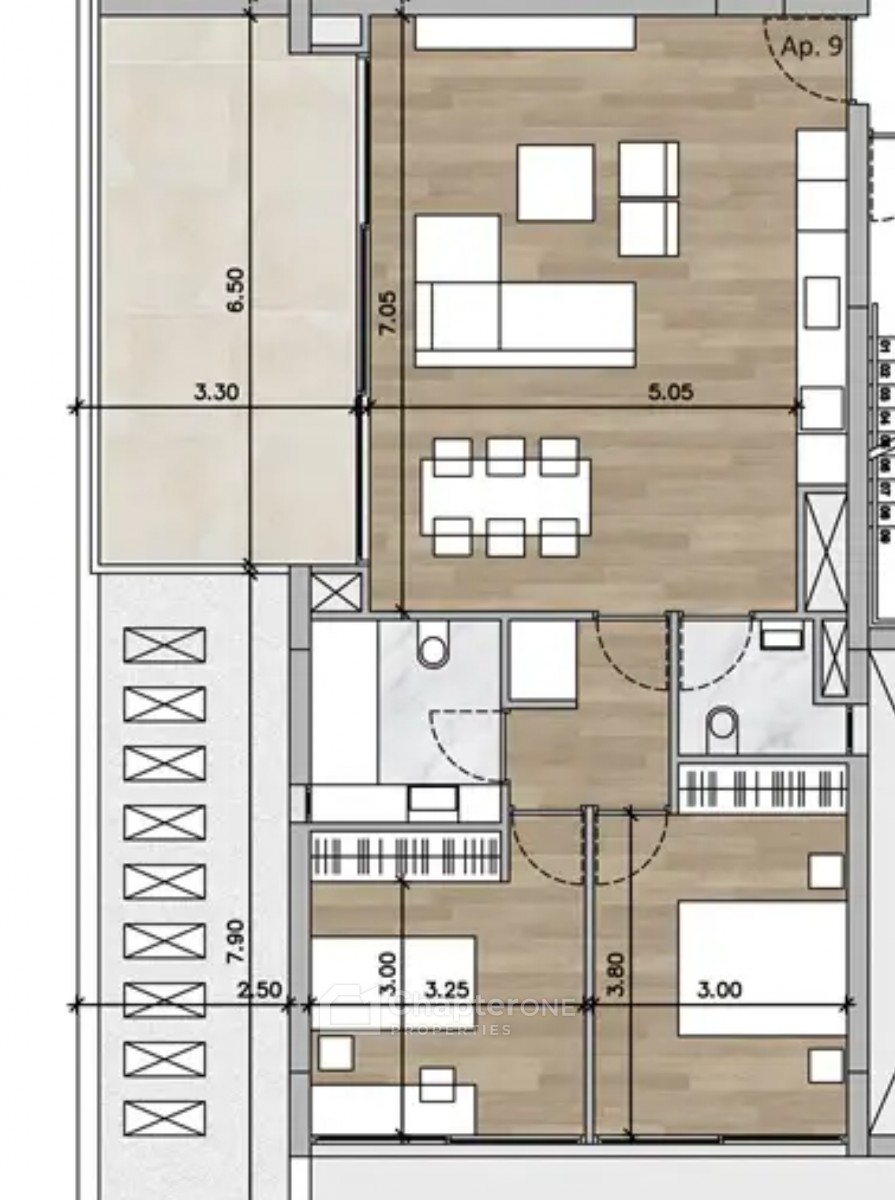 Located in Limassol's vibrant tourist hub, just 1 km from Dasoudi Beach, this A-rated, eco-friendly building features 14 apartments across 4 floors, 3 two bedroom apartments and 1 one bedroom apartment in each floor, and 2 three bedroom penthouses on the fourth floor.