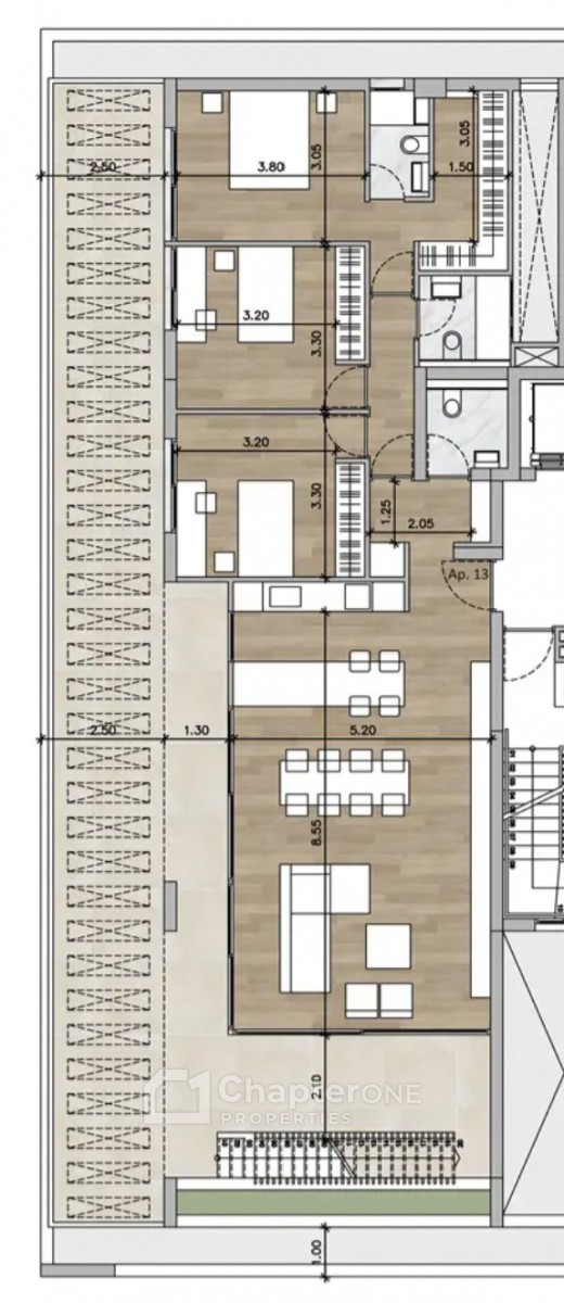 Located in Limassol's vibrant tourist hub, just 1 km from Dasoudi Beach, this A-rated, eco-friendly building features 14 apartments across 4 floors, 3 two bedroom apartments and 1 one bedroom apartment in each floor, and 2 three bedroom penthouses on the fourth floor.