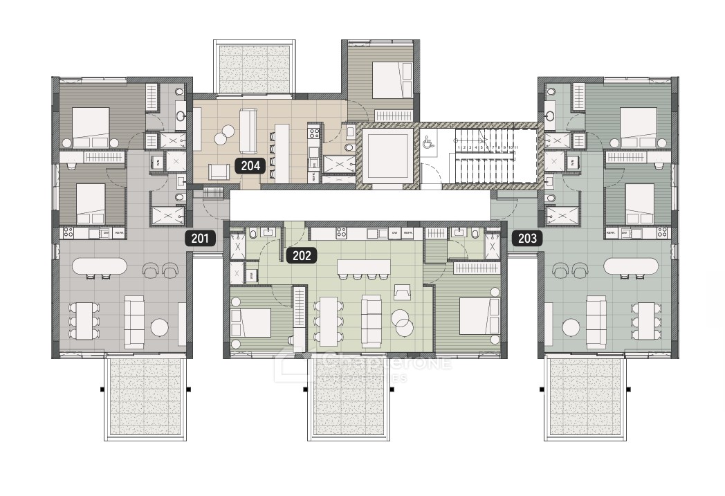 Apartment 202 is a 90sqm two-bedroom two-bathroom second floor residence with a 16sqm covered veranda, in this new premium apartment and penthouse project set in the heart of the tourist area along Limassol’s coast.