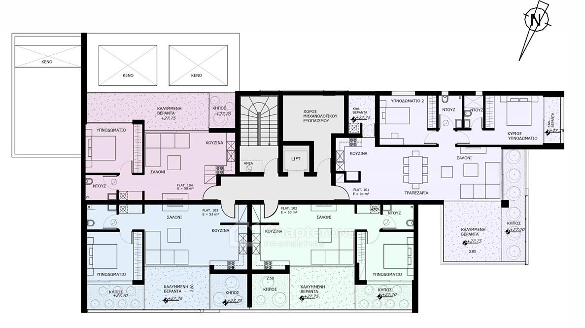 Apt 101 is an 84sqm two-bedroom two-bathroom first floor apartment with a 39sqm covered veranda in this club-style project consisting of 14 apartments, located in the most popular area of Limassol – Potamos Germasogeia.
