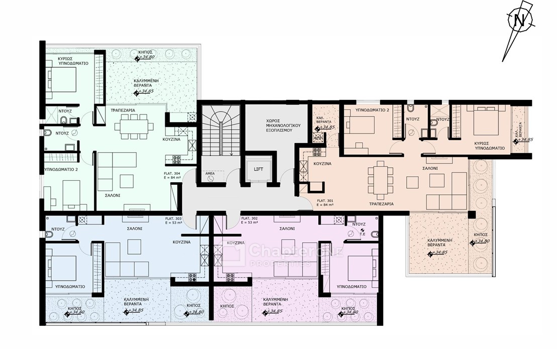 Apt 301 is an 84sqm two-bedroom two-bathroom third floor apartment with a 39sqm covered veranda in this club-style project consisting of 14 apartments, located in the most popular area of Limassol – Potamos Germasogeia.