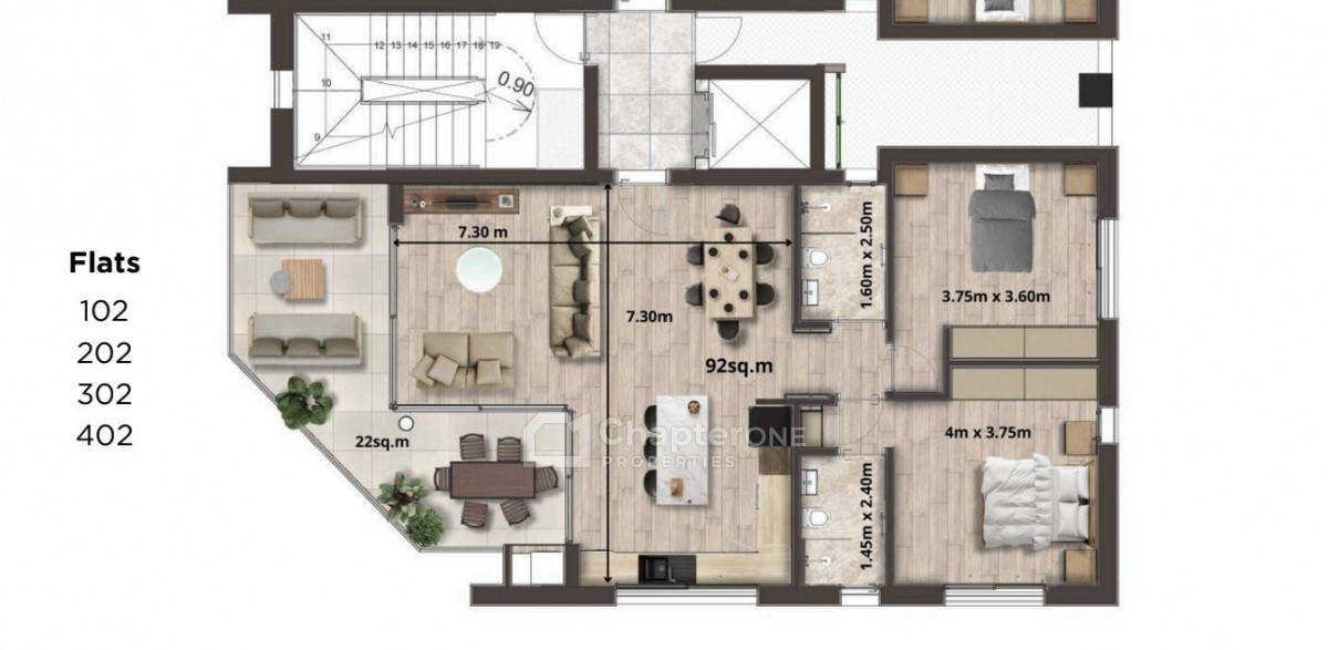 The internal area of the apartment is 92 square meters, complemented by an additional 22 square meters of covered veranda, offering a comfortable and functional open space ideal for relaxation or entertaining guests.The layout includes a spacious dining room, a practical storage room, and a covered parking space, ensuring both convenience and security.