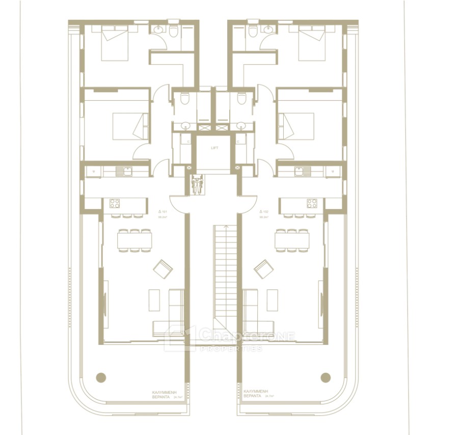Designed with a low-density concept of only two apartments per floor, the building ensures enhanced privacy, natural light, and functional modern living.