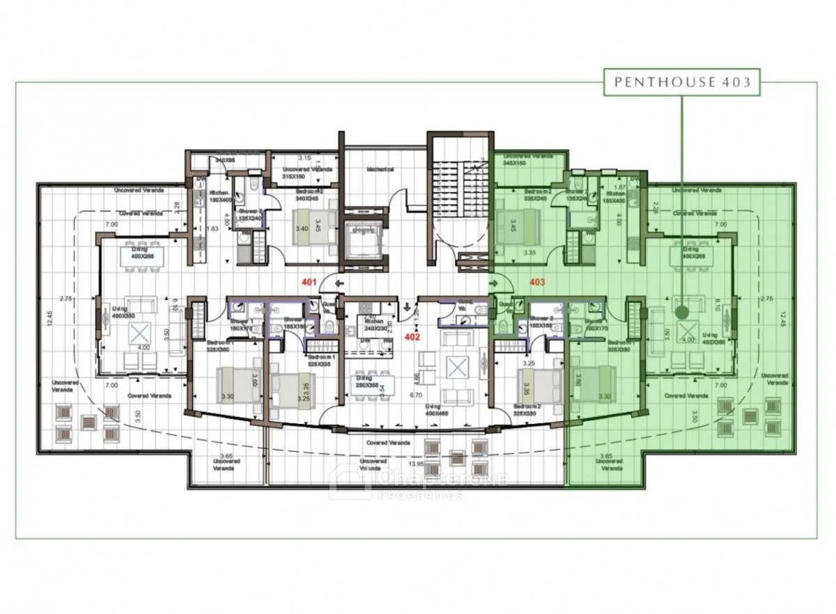 Penthouse No. 403 is a two bedroom two bathroom fourth floor apartment in a new project located southwest of the Limassol historic town centre in the Akrotiri Peninsula.