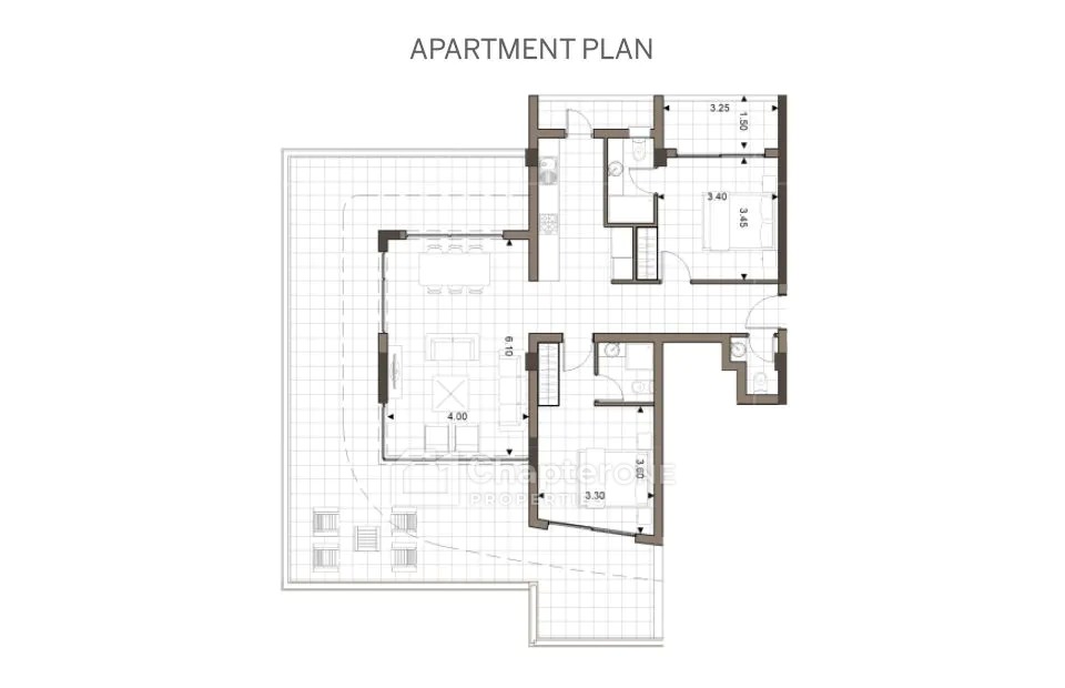 Penthouse No. 401 is a two bedroom two bathroom fourth floor apartment in a new project located southwest of the Limassol historic town centre in the Akrotiri Peninsula.