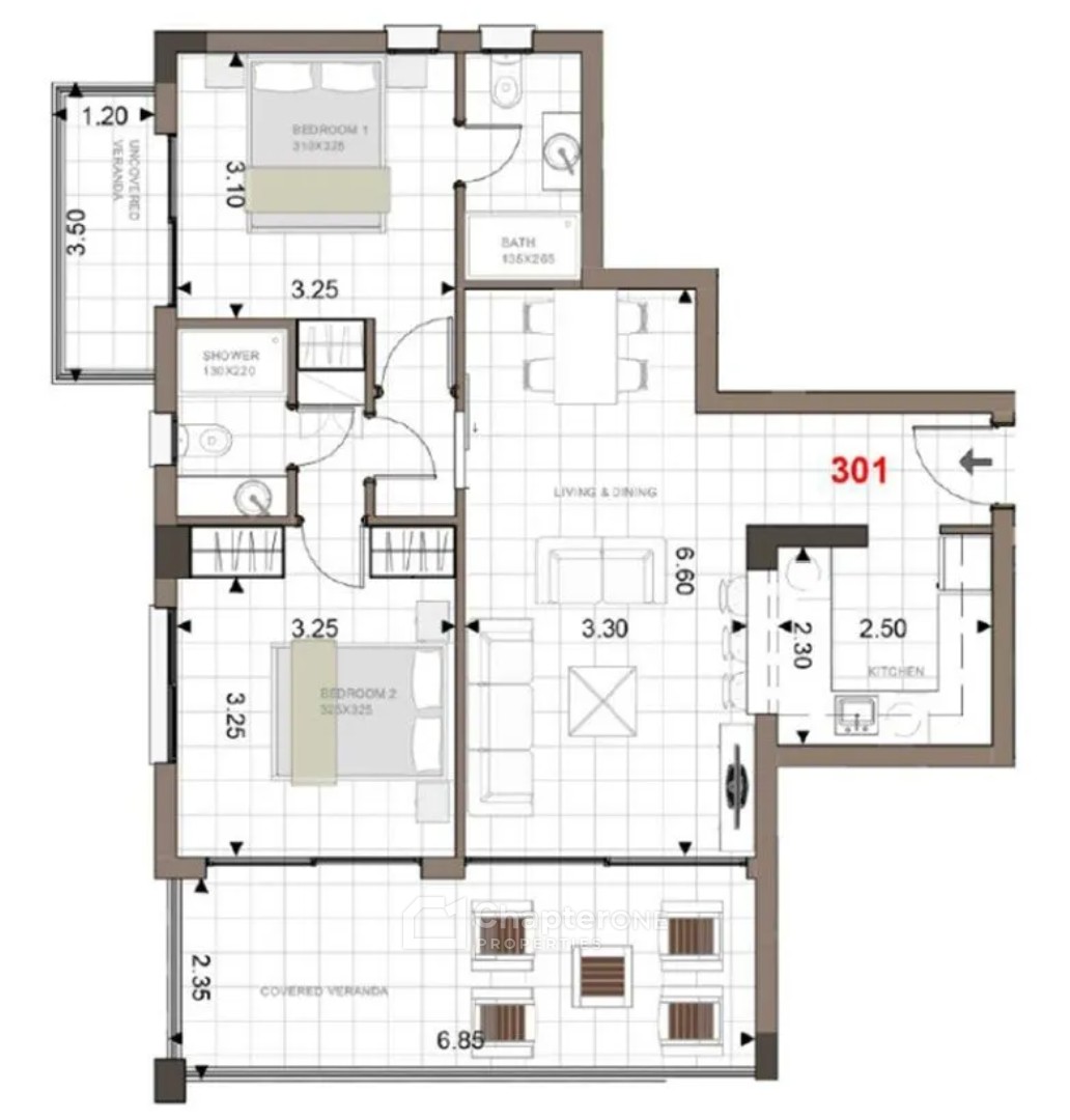Apartment No. 301 Hibiscus Block is a two bedroom two bathroom third floor apartment in a new project located southwest of the Limassol historic town centre in the Akrotiri Peninsula.