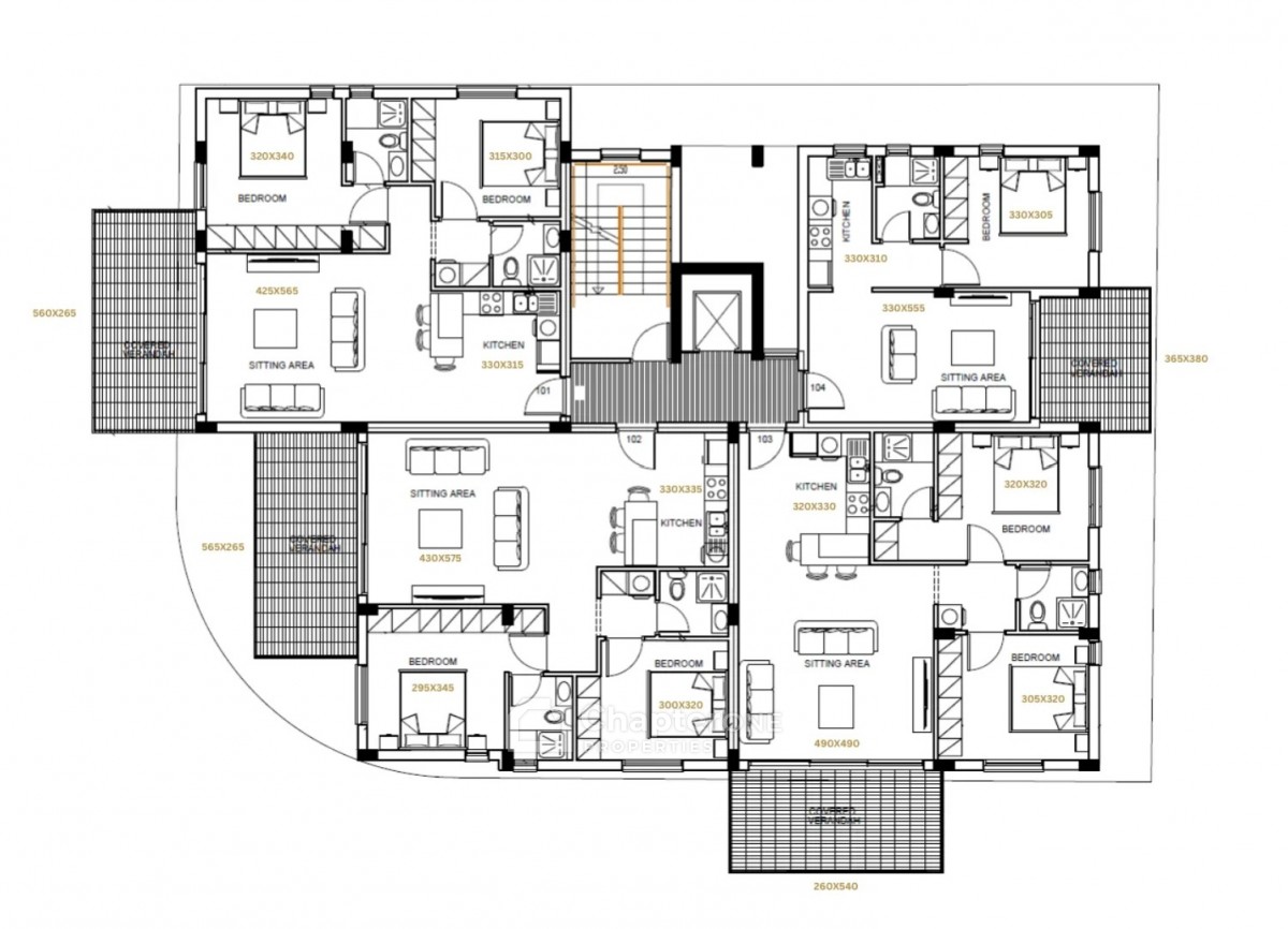 A modern two-storey residential building that consists of eight comfortable apartments with contemporary architectural layout of one and two bedrooms, two bathrooms, open plan kitchen and sitting area, and spacious covered verandas.