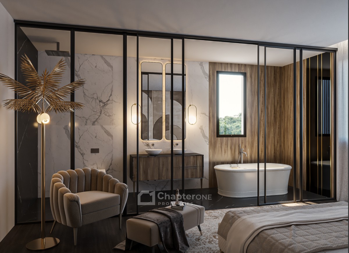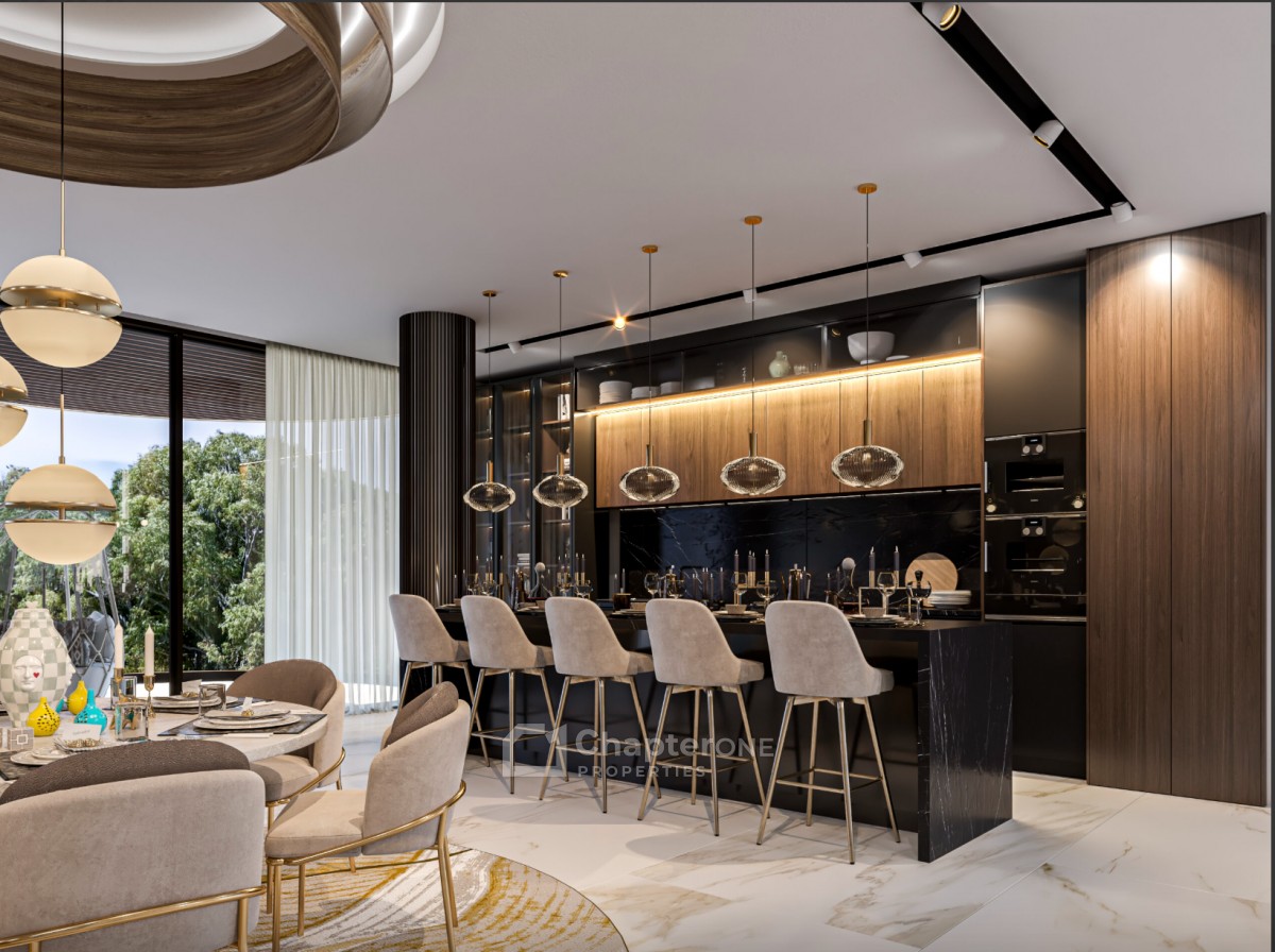 The apartment features a contemporary open-plan kitchen, underfloor heating, and a high-speed elevator for convenient access. A security alarm system ensures peace of mind, while dedicated storage space adds practical functionality to this luxurious home.