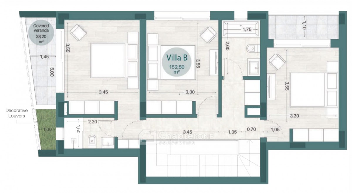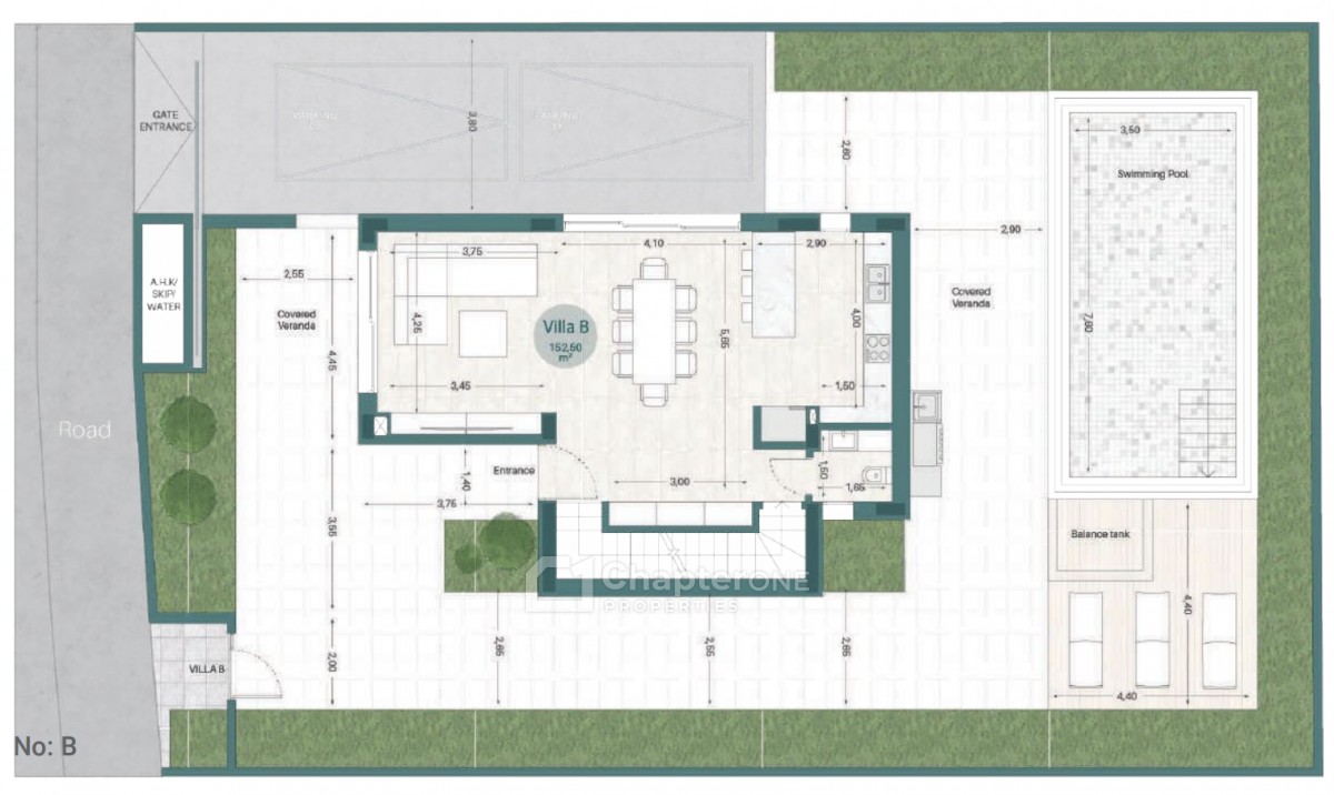 153m2 Three bedroom detached family home with private pool on a 382m2 plot in a new development of just 12 luxurious apartments and 2 exceptional villas. The villas boasts a private backyard with a sparkling pool, parking area for 2 vehicles and plenty of storage facilities.