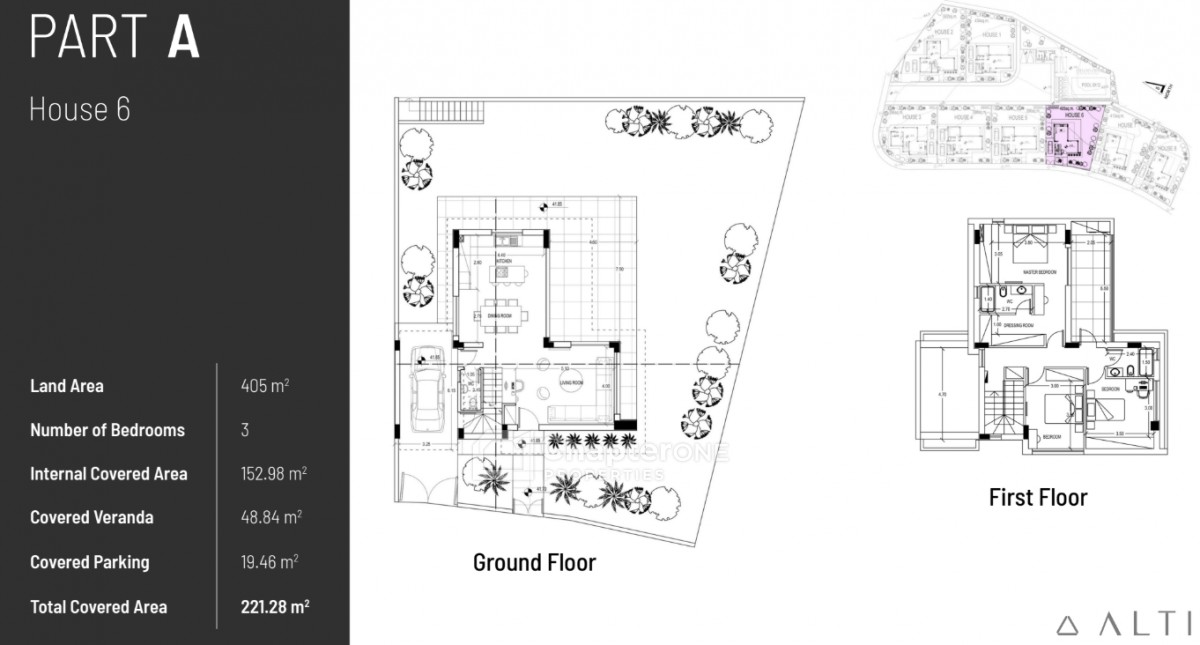153 sqm three-bedroom detached villa with a 49 sqm covered veranda, on a 405 sqm plot in a brand-new development in the prestigious area of Agios Tychonas.