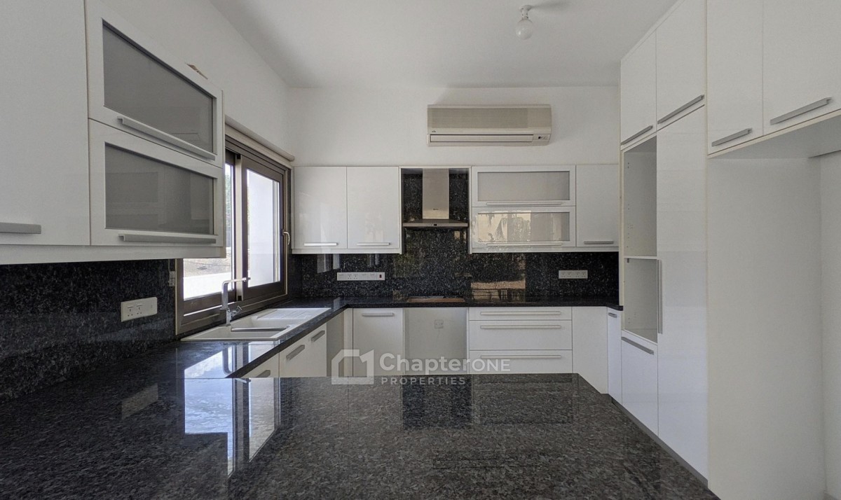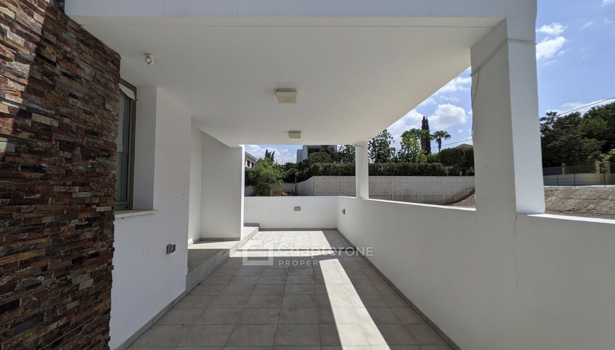 Situated in the prestigious Aglantzia neighborhood of Nicosia, this elegant two-story residence with a spacious basement exemplifies refined living. The grand entrance on the ground floor opens into an expansive open-plan living and dining space, complemented by a guest toilet and a modern kitchen featuring a cozy sitting nook—perfect for entertaining or relaxing. Upstairs, four generously sized bedrooms include two luxurious master suites, each with en-suite bathrooms, walk-in closets, and a mix of bathtubs and showers. A dedicated sitting area adds extra comfort, while a practical laundry room enhances convenience. The large basement, approximately 217 sqm, provides versatile space with two secure parking spots, a guest toilet with shower, an additional room, and a fully equipped kitchen—ideal for hosting or creating an independent living area. With a separate title deed, this exclusive property offers both security and an exceptional investment opportunity in one of Nicosia’s most sought-after locations.