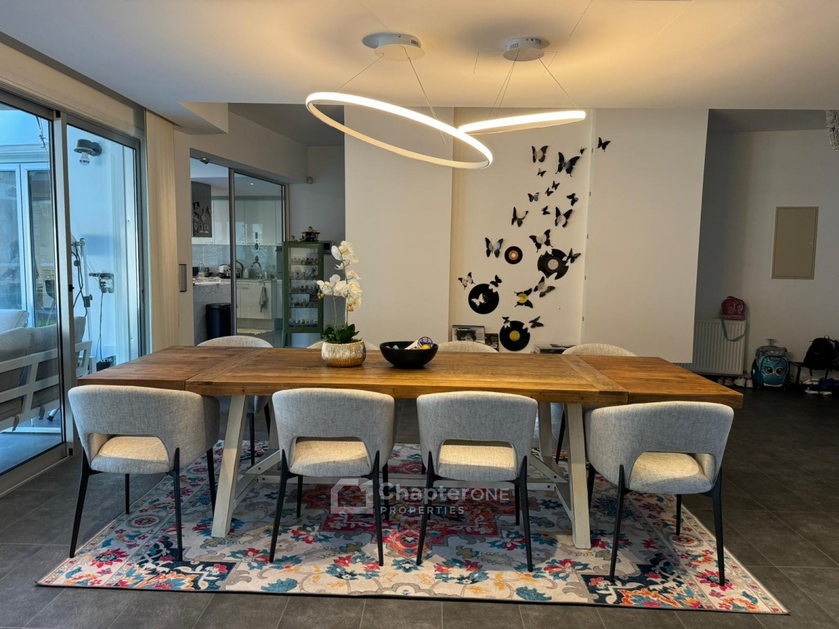 Outdoor spaces are equally impressive, boasting a private swimming pool, landscaped garden, covered and uncovered verandas, as well as two covered parking spaces.