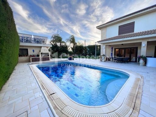 Nestled in the serene and sought-after neighborhood of Egkomi in Nicosia, this remarkable villa blends luxury, privacy, and convenience. Set on an expansive 861sqm plot, the property features a striking 10x5 meter swimming pool, ideal for outdoor leisure and entertainment. A covered veranda of 45sqm enhances the outdoor living experience, complemented by a barbeque area and an outdoor shower.