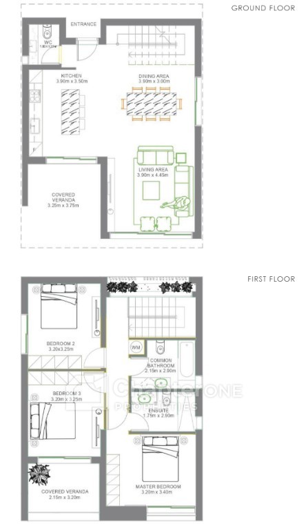 The villa features a bright open-plan kitchen that seamlessly connects to the spacious living and dining areas, creating a welcoming environment for relaxing or entertaining. All three bedrooms are well-proportioned, with the master bedroom benefiting from a private ensuite bathroom, while a second bathroom serves the rest of the home.