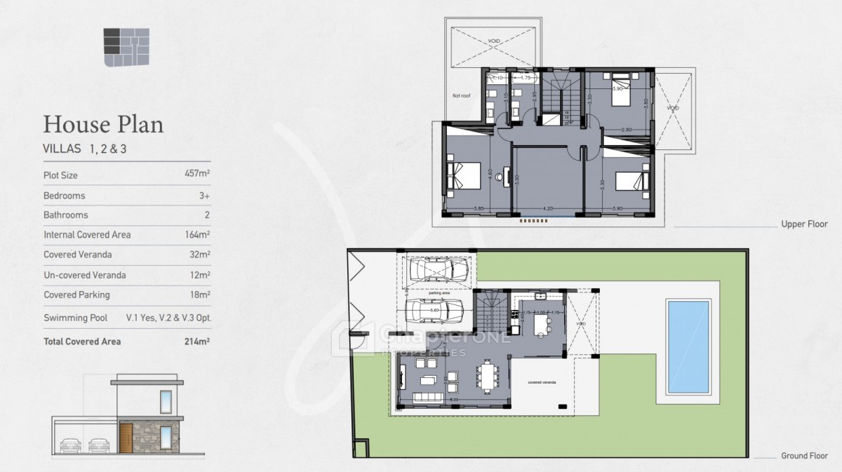 The design of the villas has been inspired by Mediterranean architecture and they are built in large plots with the option of your own private swimming pools and barbecue areas. Large landscaped gardens offer ample room for private swimming pools and barbeque areas. A great selection of finishes creates appealing living spaces with wooden surfaces and the touch of natural stone.
