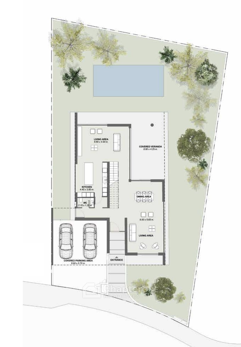 - Uncovered Veranda: 44sqm