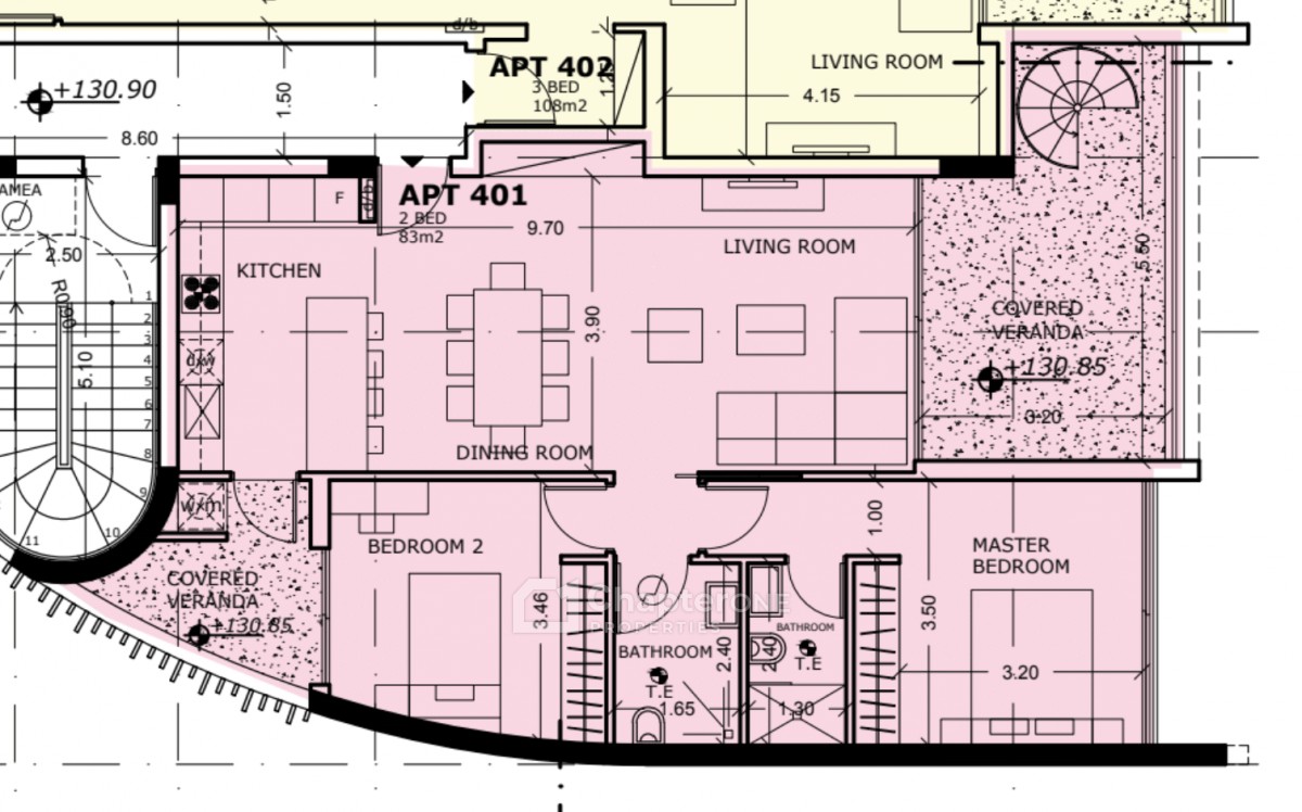 Brand new 4th floor 80m2 two bedroom penthouse apartment with a 21m2 veranda plus a 60m2 private roof garden in Agios Athanasios, available to reserve today for occupation in 2028