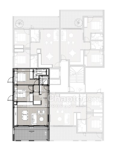 The apartment offers an inviting open-plan kitchen and living area, designed to maximize space and natural light, creating a warm atmosphere for relaxing or entertaining. The master bedroom includes a private ensuite bathroom, adding extra luxury and privacy.