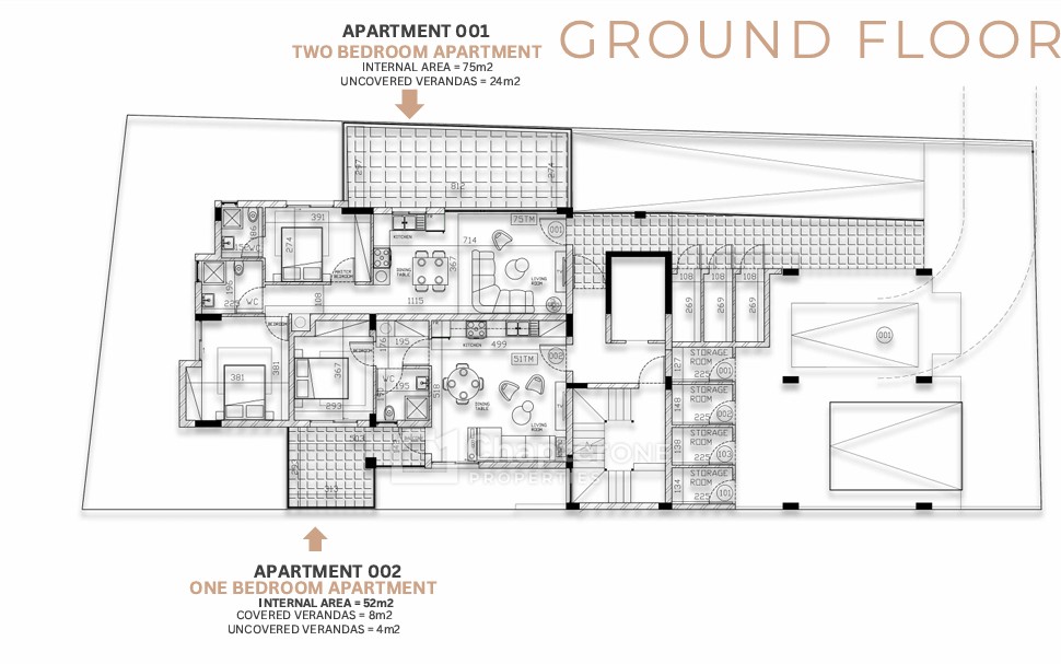 75sqm two-bedroom two-bathroom ground floor apartment with a 27sqm uncovered veranda in a new development in the Limassol district of Petrou Kai Pavlou.