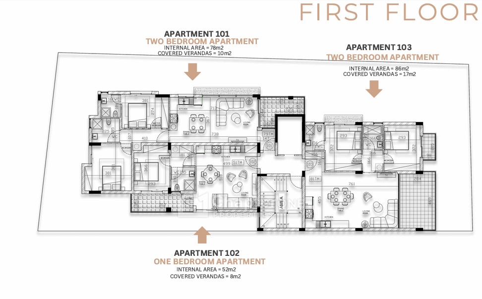 79sqm two-bedroom two-bathroom first floor apartment with a 11sqm uncovered veranda in a new development in the Limassol district of Petrou Kai Pavlou.