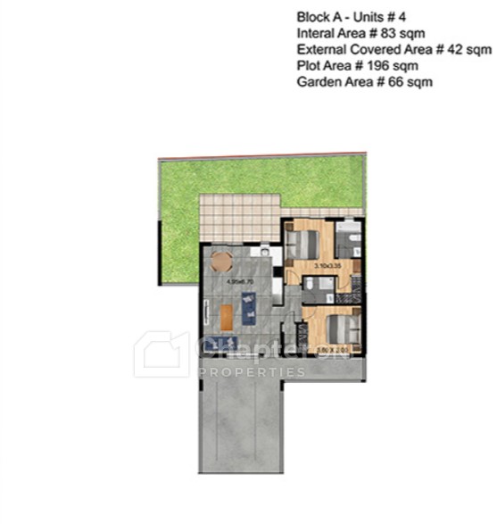 83sqm two-bedroom two-bathroom plus guest WC ground floor maisonette with a 42sqm covered veranda, off-street parking and private garden, in a new gated community development within the boundaries of the very sought after and popular Parekklisia Village.