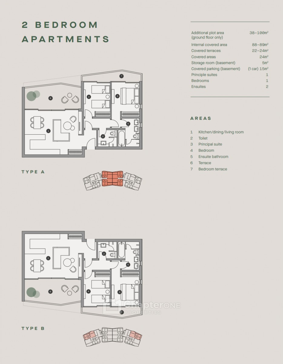 Ground floor 89m2 two bedroom two bathroom apartment with a 24m2 covered terrace, 9m2 uncovered terrace and a 68m2 private garden, located in one of the largest masterplan developments in Cyprus, in the city of Limassol.