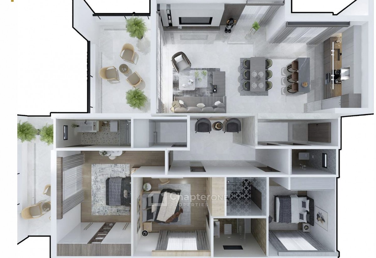 This residential building offers a unique and exclusive living experience, designed with sophistication and attention to detail. Comprising four floors, it houses 11 meticulously designed apartments, ranging from 1-, 2-, and 3-bedroom layouts. Each apartment is spacious, featuring large interiors, en-suite bathrooms, balconies, and storage rooms for convenience.
