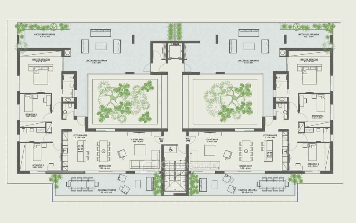 This spacious three-bedroom apartment, located in Aglantzia's Platy area near Academias Park, boasts a modern design and a range of desirable features. The apartment will include an open-plan kitchen, living room, and dining area, providing a seamless flow of space. The three bedrooms are generously sized, with the master bedroom offering en-suite facilities. A main bathroom and a guest toilet will serve the other rooms, and the apartment also features a laundry area. Additionally, the apartment offers a large covered and uncovered veranda, ideal for outdoor relaxation.