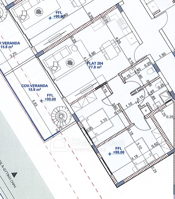 78sqm two-bedroom second floor penthouse apartment with a 17sqm south facing covered veranda plus a 60sqm roof garden, in a new and charming residential development located in the serene and picturesque area of Erimi.
