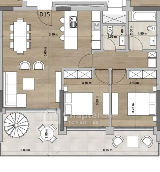 Two bedroom 85m2 fourth floor apartment with a 10m2 covered veranda, 13m2 uncovered veranda plus a 53m2 roof garden, in an off-plan project from a well regarded luxury property developer. Estimated delivery is Q2 2027