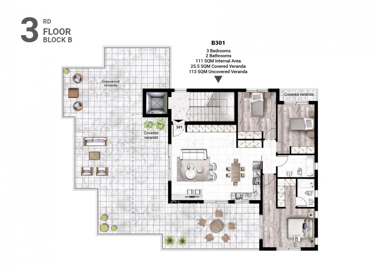 Fully furnished and ready to move into three bedroom penthouse in a rural picturesque setting in the village of Parekklisia, Limassol.