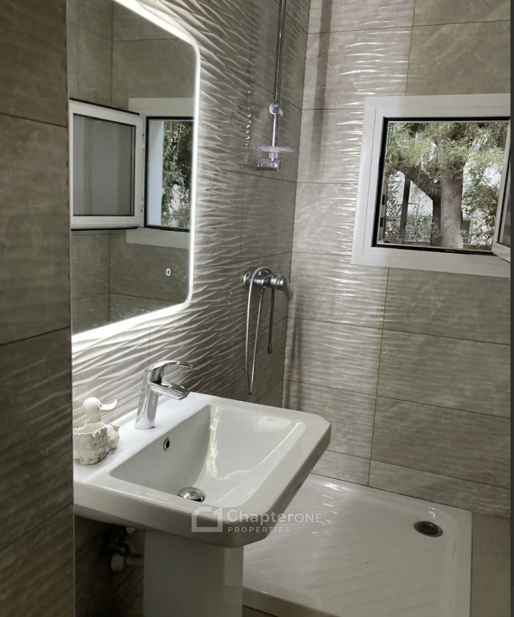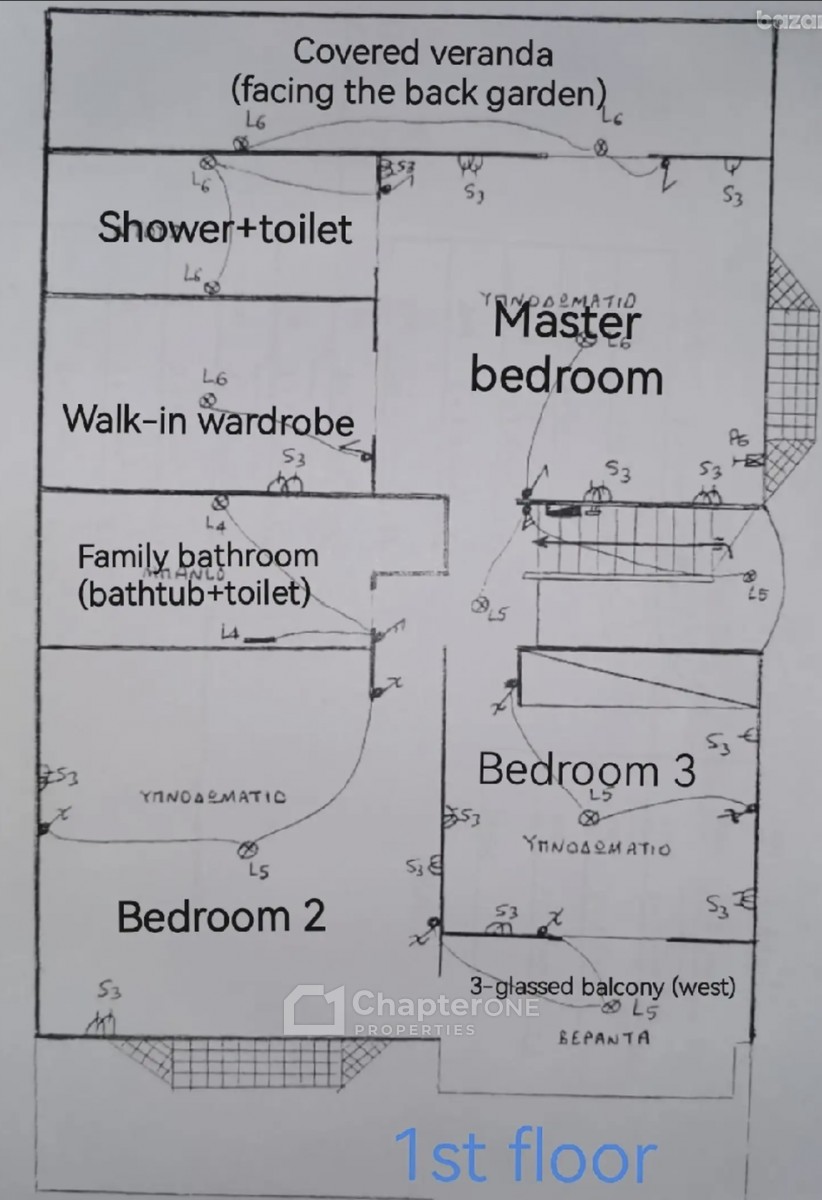 First floor: 25m2 master bedroom witn walk-in wardrobe and en-suite shower+toilet and own large covered veranda overlooking the back garden. Two smaller bedrooms share a covered balcony (triple-glased thermo- & sound insulated, installed in 2021) facing west, i.e. the front of the house. Family bathroom with oversised bath tub.All rooms are air-conditioned.